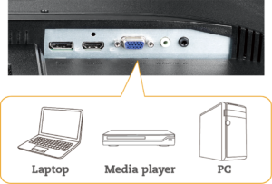 • Wejście DisplayPort, HDMI i VGA do połączeń Full HD urządzeń multimedialnych