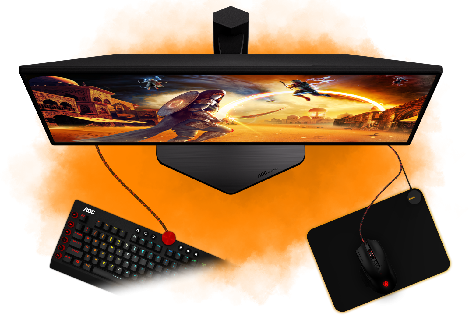 Nasza nowa podstawa. Współprojektowana z profesjonalistami e-sportowymi, umożliwia maksymalne wykorzystanie wolnej przestrzeni na wszystkie urządzenia peryferyjne. Podstawa monitora została zaprojektowana tak, aby zmniejszyć miejsce, jakie zajmuje monitor na biurku, a nawet pozwala na umieszczenie klawiatury na wierzchu. Stojak zawiera zarządzanie kablami, aby utrzymać porządek na biurku. Niezależnie od gatunku, w którym rywalizujesz, chcemy, abyś czuł się jak profesjonalista.