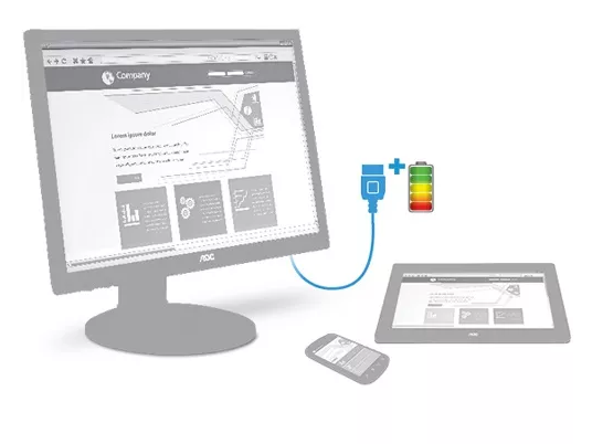 Technologia Mobile High-Definition Link (MHL) umożliwia wyświetlanie zawartości z urządzeń przenośnych bezpośrednio na ekranie HD. Za pomocą opcjonalnego kabla MHL możesz podłączyć smartfon, tablet lub przenośną konsolę do gier i ożywić zawartość na dużym monitorze HD z pełnym dźwiękiem cyfrowym. Odpręż się i ciesz się grami, filmami, zdjęciami i aplikacjami na dużym ekranie, jednocześnie ładując urządzenie mobilne.