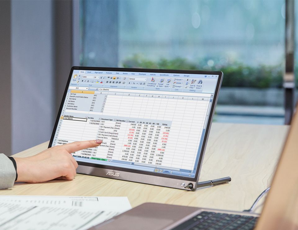 ZenScreen™ MB16AH doskonale nadaje się do wykorzystania jako drugi monitor do dwuekranowych prezentacji, a jego wszechstronność znacznie zwiększy Twoją efektywność w drodze i w podróży. Jest niewiarygodnie lekki, ważąc jedynie 730g, a także posiada ultrasmukły, 8-milimetrowy profil, dzięki czemu z łatwością zmieści się w każdej torbie podróżnej.