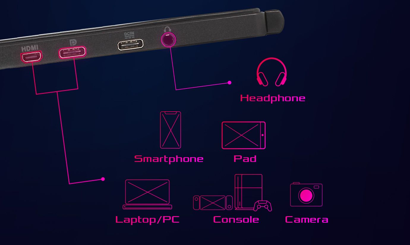 Dzięki USB-C ™ i micro-HDMI, ROG Strix XG17AHP umożliwia wyświetlanie treści z szerokiej gamy urządzeń, w tym laptopów, smartfonów, konsol do gier, aparatów i tabletów.