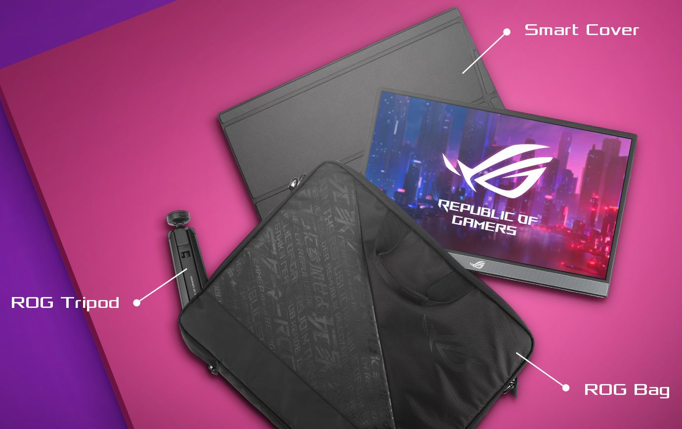 Z dołączoną inteligentną osłoną, statywem, a nawet torbą ROG, ROG Strix XG17AHP mieści wszystko, czego potrzebujesz w jednym przenośnym opakowaniu. Od teraz możesz grać zawsze, gdziekolwiek jesteś!
