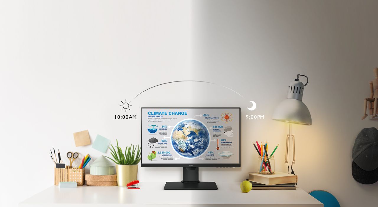Unikalna technologia BenQ Brightness Intelligence Technology (BI Tech.) Może automatycznie dostosowywać jasność monitora do oświetlenia otoczenia, dzięki czemu uczniowie mogą skupić się na programowaniu lub kodowaniu komputera zamiast spędzać czas na skomplikowanych ustawieniach monitora.