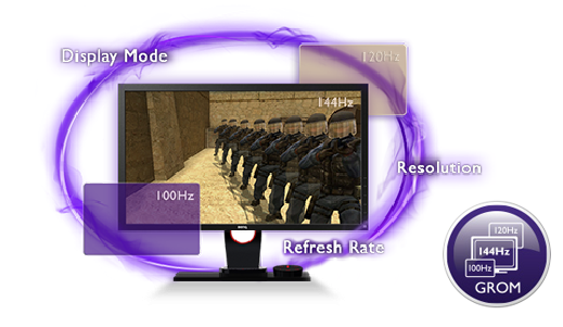 Jako wiodąca marka w produkcji monitorów do gier, BenQ dostarcza więcej niż tylko funkcję częstotliwości odświeżania dla różnych rozdzielczości, aby dotrzeć do większej liczby poziomów optymalnych częstotliwości odświeżania (100/120 / 144Hz). To Optymalizacja Zarządzania, która ma przynieść użytkownikom niezrównaną wydajność w grach. Dzięki tej funkcji, która współpracuje z Trybem Wyświetlania i Trybem Smart Scalling, BenQ oferuje kompletne rozwiązanie częstotliwość odświeżania dla miłośników gier.