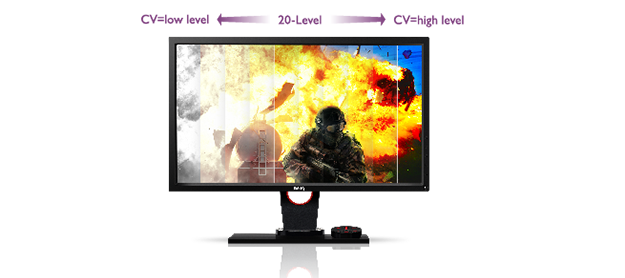 Jest absolutnie konieczne, by XL2430T dał Ci niezbędną elastyczność do uzyskania wydajności kolorów, taką jaką uznasz za stosowną. To dlatego BenQ zaimplementował 20 poziomów ustawień natężenia barwy kolorów do indywidualnych wymagań i preferencji miłośników gier. Ta unikalna funkcja jest dostępna poprzez menu ekranowe (OSD) lub dla większej wygody z poziomu pilota.