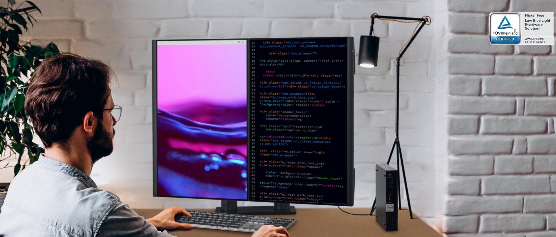 Zaprojektowany z myślą o dobrym samopoczuciu: ComfortView Plus — stale włączona, wbudowana osłona o niskiej emisji niebieskiego światła — zmniejsza potencjalnie szkodliwe emisje niebieskiego światła bez wpływu na kolor.