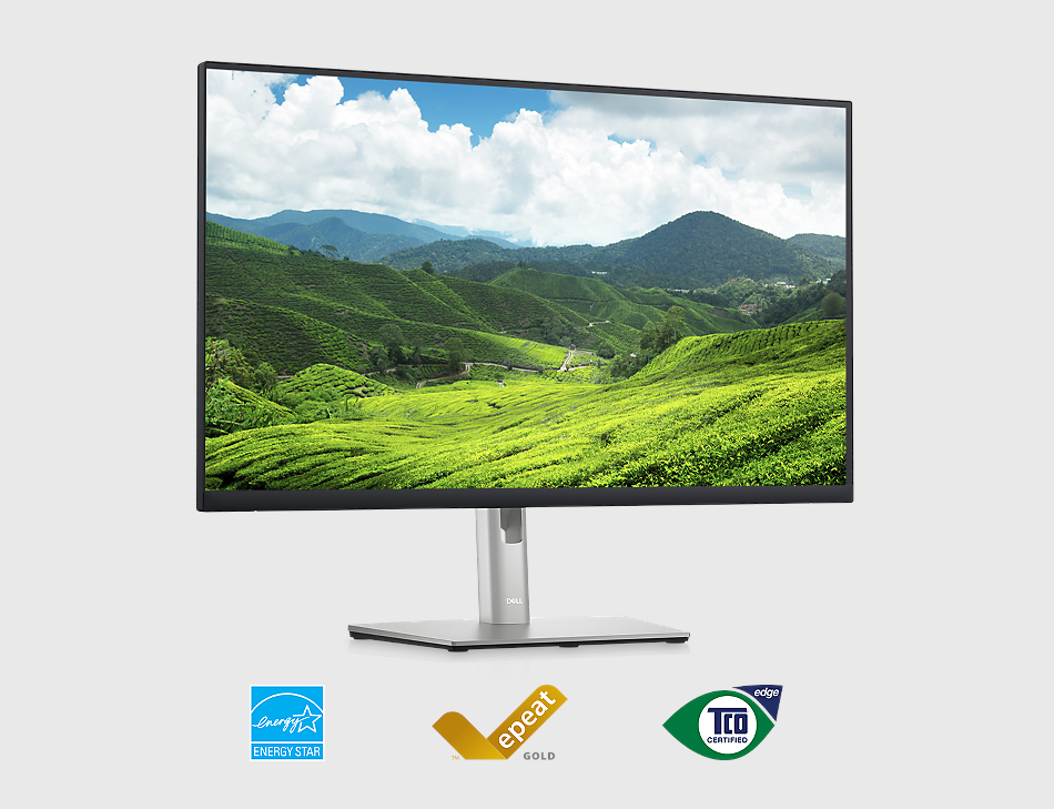 Standardy dotyczące jakości: monitor jest wykonany w 85% z PCR (tworzywa sztucznego), spełnia normy jakości, takie jak EnergyStar® i ma certyfikat TCO Certified Edge oraz EPEAT® Gold.