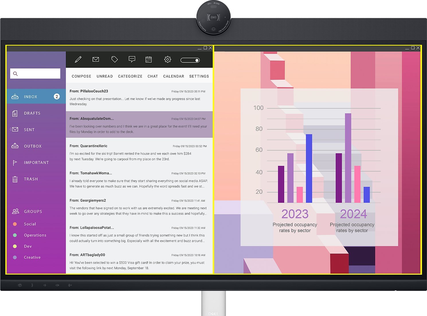 Zabezpieczone interakcje: Ręczna migawka kamery internetowej i wygodny przycisk wyciszania mikrofonu na tym monitorze z certyfikatem Zoom pomagają zapewnić, że przekazujesz tylko to, co chcesz i kiedy chcesz.