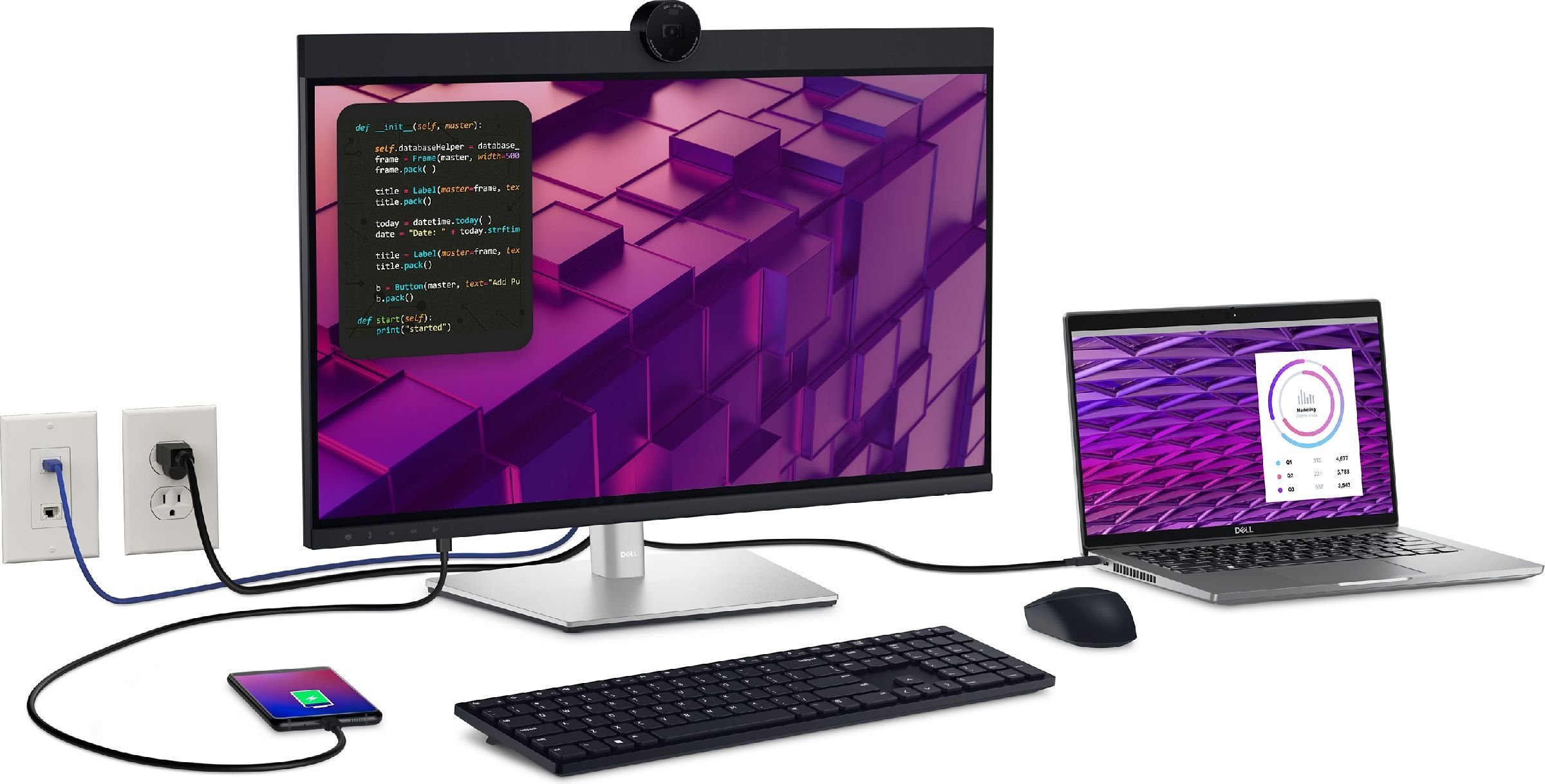 Łączność i produktywność: Dzięki opcjom łączności przewodowej, takim jak RJ45 i USB-C®, monitor zapewnia stabilne połączenie z siecią Ethernet, zasilanie oraz umożliwia przesyłanie dźwięku i obrazu — a to wszystko bez bałaganu na biurku.