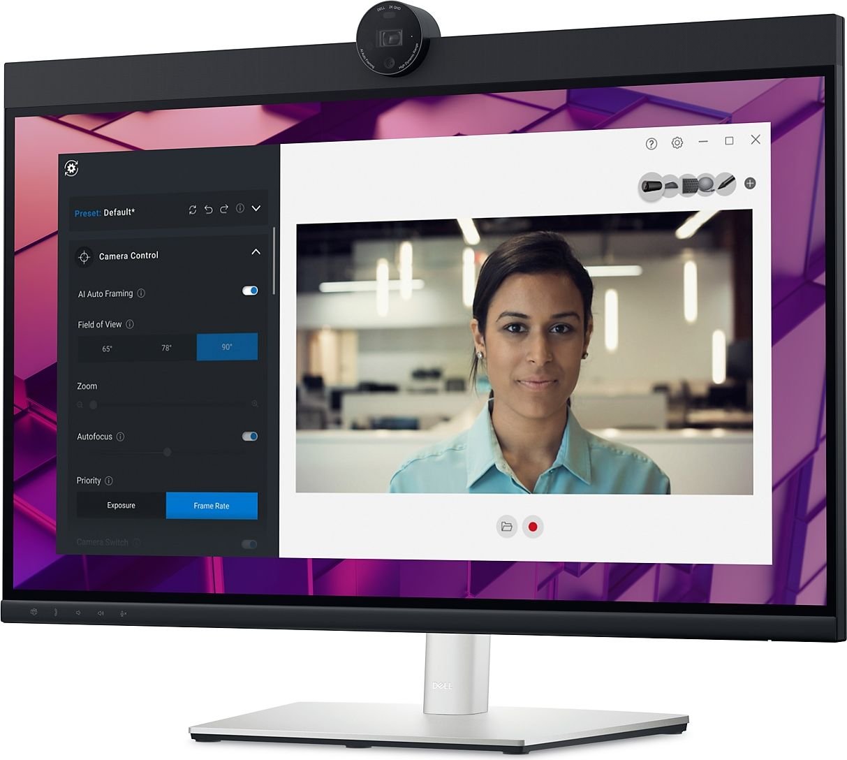 Zaplanuj to, jak widzą Cię inni: Dell Peripheral Manager zapewnia niesamowitą gamę funkcji, takich jak HDR, automatyczne kadrowanie AI, różne pola widzenia i ustawienia wstępne, umożliwiając łatwe dostosowanie ustawień do własnych preferencji.