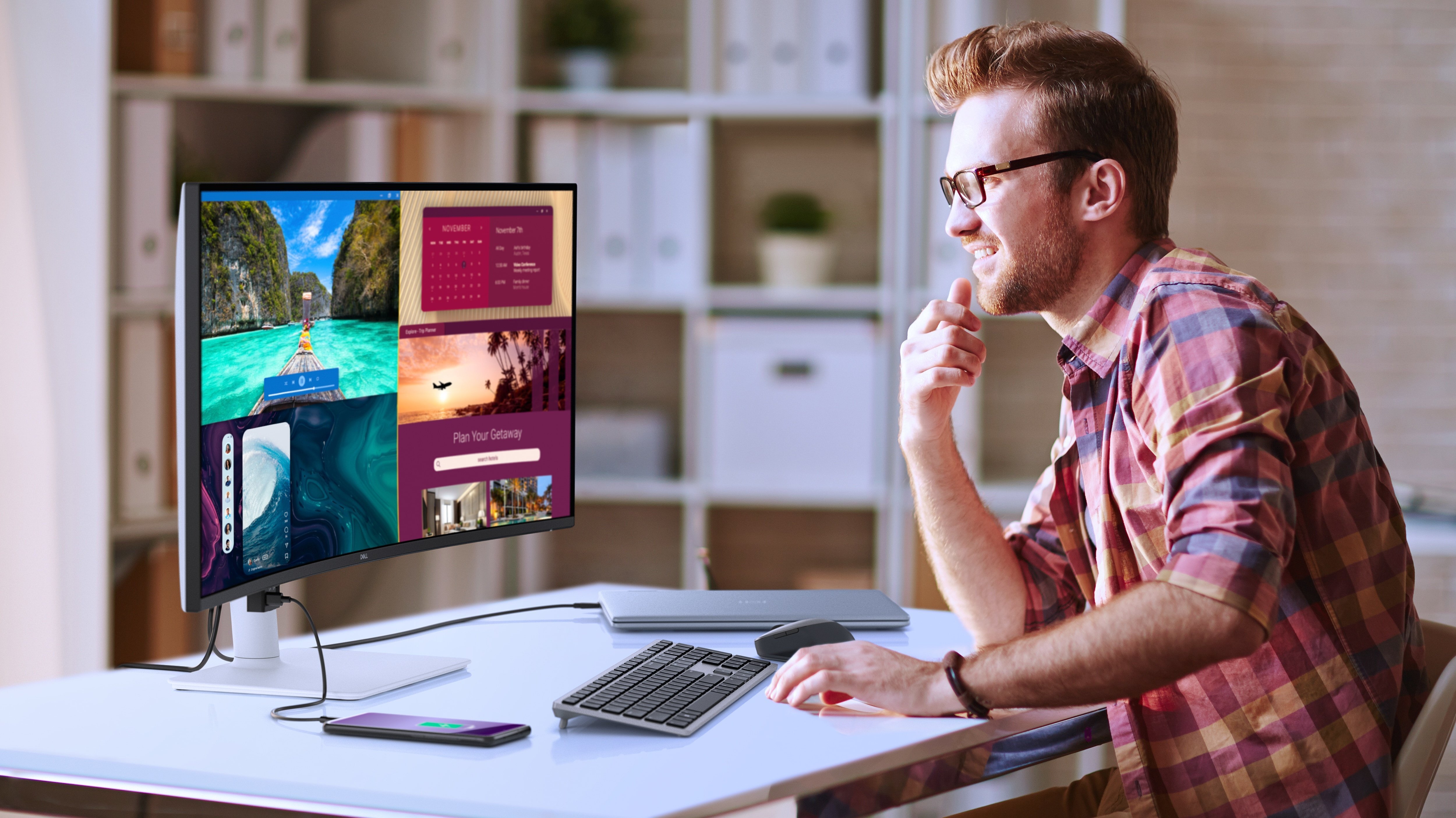 Utrzymuj porządek na biurku za pomocą jednego kabla USB-C (zasilanie do 65 W).