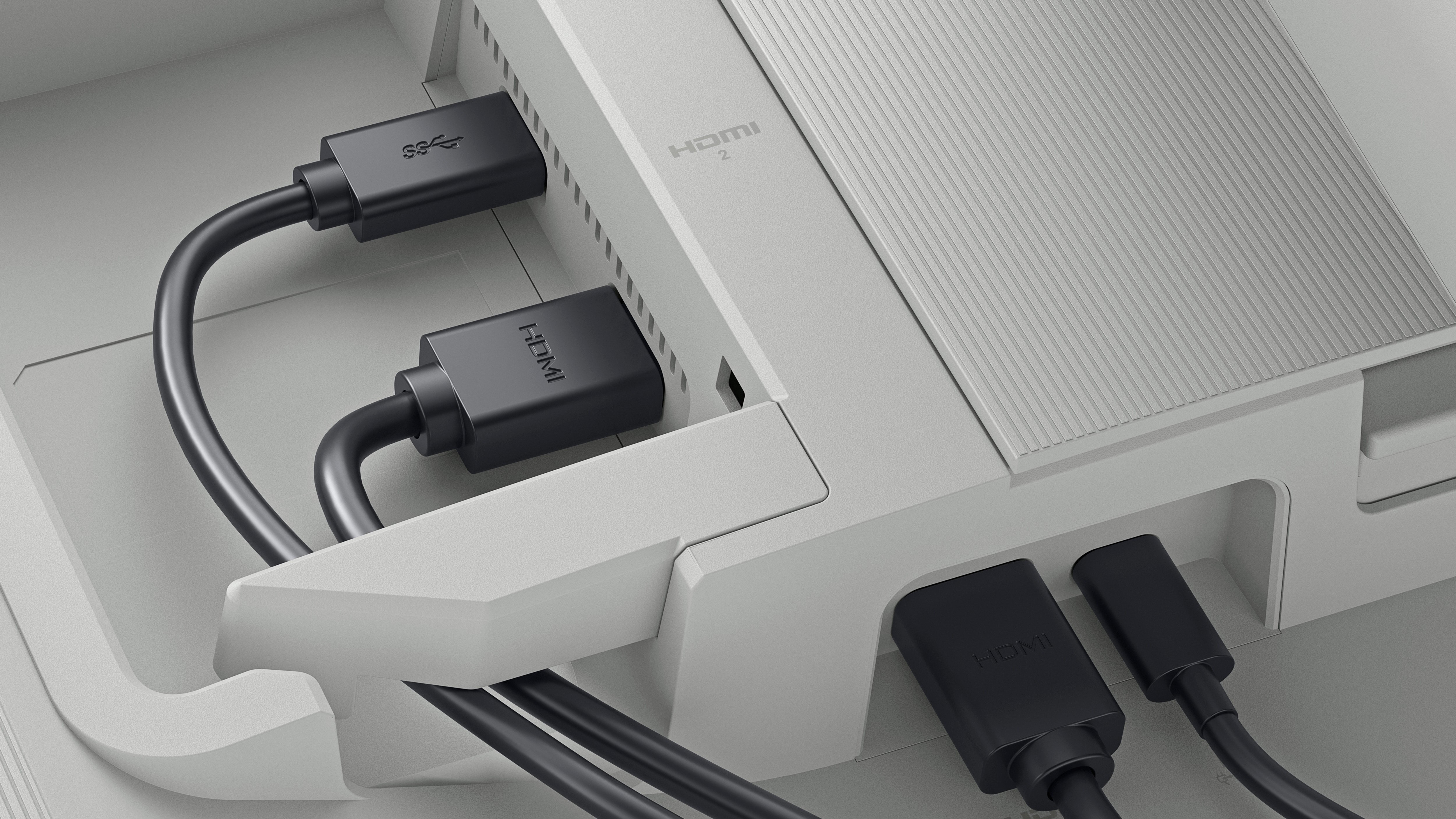 Konstrukcja z dostępem bocznym obejmuje port HDMI i USB Type-A, zapewniając szybką i wygodną konfigurację.