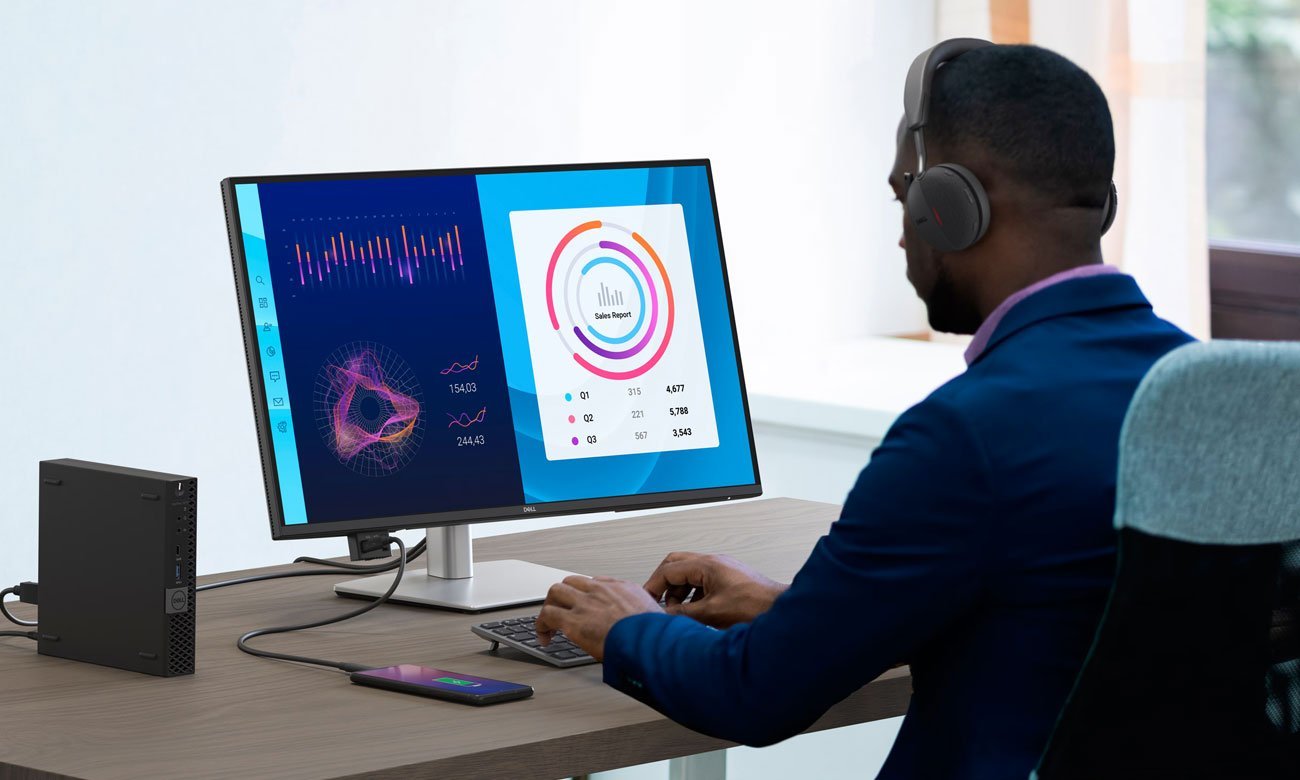 Dell Pro Plus P2725D to monitor o przekątnej 27 cali i rozdzielczości QHD, który zapewnia zarówno szczegółowy obraz, jak i dbałość o zdrowie oczu użytkownika.