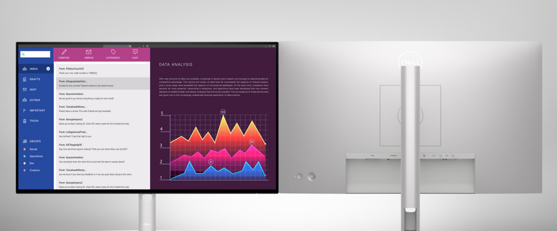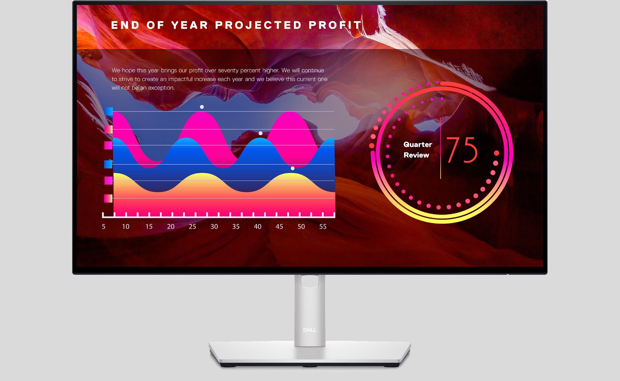Większa produktywność — korzystanie z dwóch monitorów zwiększa produktywność nawet o 21%. Za pomocą ustawień menu ekranowego (OSD) na jednym monitorze można konfigurować i synchronizować wiele połączonych ze sobą monitorów.