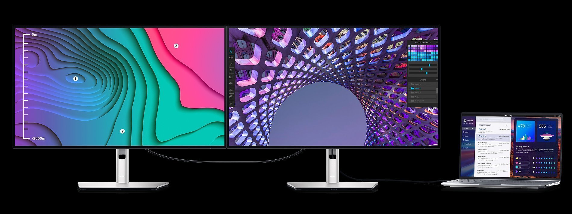 Większa produktywność: postaw na bezkompromisową grafikę dzięki połączeniu łańcuchowemu dwóch monitorów 4K. U2723QE to pierwszy na świecie monitor 27” 4K, który umożliwia połączenie łańcuchowe dodatkowego monitora 4K z obsługą pełnej rozdzielczości za pomocą portu USB-C dzięki technologii Display Stream Compression (DSC).