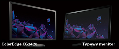 ColorEdge CG2420 ma wyjątkowo szeroki gamut kolorów i odtwarza prawie całą przestrzeń Adobe RGB, dzięki czemu pliki w tym formacie będą wyświetlane poprawnie. Kolory na zdjęciach przedstawiających błękitne niebo czy żywą zieleń lasów będą reprodukowane z wiernością, której nie oddadzą monitory z przestrzenią kolorów sRGB. Szeroki gamut monitora oznacza również, że będzie on w stanie wyświetlić prawie w całości przestrzenie CMYK ISO-coated i US web-coated, wykorzystywane w procesie druku.