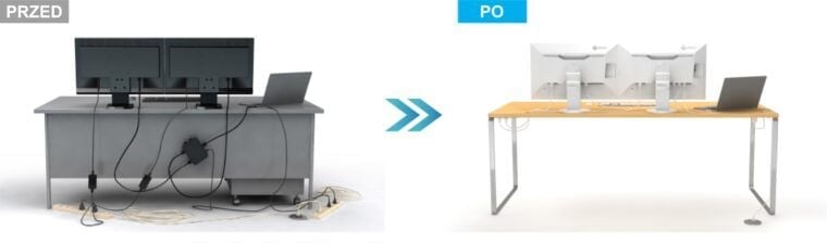PCSK-03 to stelaż zgodny ze standardem VESA, mocowany od tyłu na stopkę monitora. Umieszczając na nim komputer typu thin client lub mini PC można zwolnić cenne miejsce na biurku, nie rezygnując przy tym z możliwości swobodnej regulacji stopki monitora.