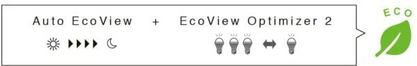 Czujnik Auto EcoView wykrywa zmiany oświetlenia zachodzące w otoczeniu w ciągu dnia i automatycznie ustawia optymalny poziom jasności ekranu, aby zapobiec zmęczeniu oczu.