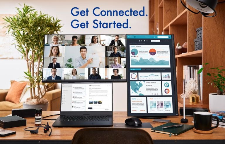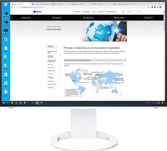 EV2490 ma panel IPS o przekątnej 23,8″ i rozdzielczości full HD (1920 x 1080). Po podłączeniu go do laptopa o przekątnej 14 cali dostępna przestrzeń robocza zwiększa się aż trzykrotnie. Dzięki temu możesz pracować szybciej i wygodniej, bez konieczności przewijania zawartości ekranu i przełączania się między oknami.