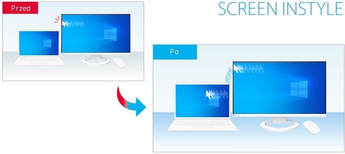 Darmowe oprogramowanie EIZO Screen InStyle oferuje funkcję Mouse Point Utility, która ułatwia zlokalizowanie kursora myszki na ekranie, a także umożliwia wygodne przesuwanie go między monitorami bez bariery cechującej tradycyjne konfiguracje wielomonitorowe.