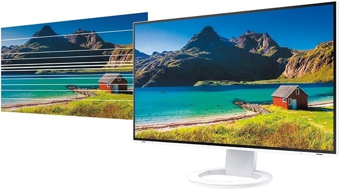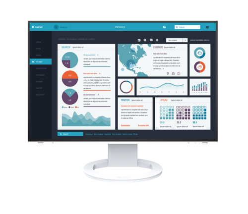 FlexScan EV2495 ma bezramkową konstrukcję – zgodną z minimalistycznym trendem. Występuje w wersji z białą obudową, sprawiając że stanowisko pracy staje się jaśniejsze i przyjemniejsze dla oka. Kable dostarczane są w kolorze odpowiadającym kolorowi obudowy.