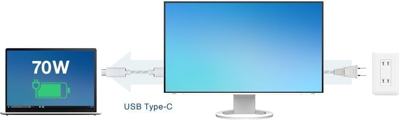 Monitor wyposażono w złącze USB Type-C, które pozwala na wyświetlanie sygnału video, odtwarzanie audio, transmisję sygnału USB, zasilanie podłączonych do niego urządzeń, a nawet transmisję sygnału sieciowego. Taka wszechstronność sprawia, że szybciej i łatwiej podłączysz swój laptop, przemieszczając się pomiędzy różnymi stanowiskami pracy – na przykład między biurem a domem, gdzie łatwo przejdziesz do trybu pracy zdalnej.