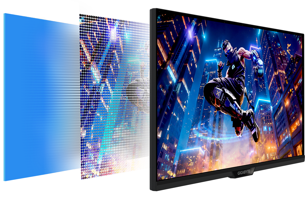 Monitor Gigabyte M27Q2 QD gwarantuje wyjątkowo realistyczne barwy dzięki szerokiemu pokryciu palety kolorów DCI-P3 sięgającemu 99%. Rozdzielczość 2560 x 1440 (WQHD) zapewnia ostrość każdego detalu, a matowa powierzchnia ekranu zapobiega refleksom, umożliwiając wygodne korzystanie w różnych warunkach świetlnych.