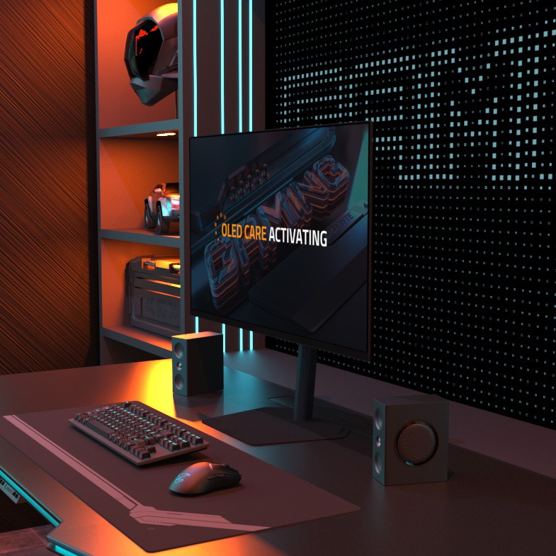 Długowieczność panelu OLED zapewnia system AI-OLED Care, który wykorzystuje algorytmy sztucznej inteligencji do minimalizowania ryzyka wypalenia pikseli poprzez dyskretne procesy ochronne działające w tle. Za optymalne temperatury odpowiada zaawansowany, pasywny układ chłodzenia (Customized Heatsink) z powłoką grafenową, co eliminuje konieczność stosowania głośnych wentylatorów. Monitor wyposażono również w funkcjonalny przełącznik Tactical Switch oraz wbudowany hub USB z portem Type-C (obsługującym sygnał DisplayPort oraz ładowanie 18W). Ergonomiczna podstawa pozwala na pełną regulację: wysokości (130 mm), pochylenia, obrotu w poziomie (Swivel) oraz pracę w trybie portretowym (Pivot 90°), zapewniając maksymalny komfort podczas wielogodzinnych sesji.