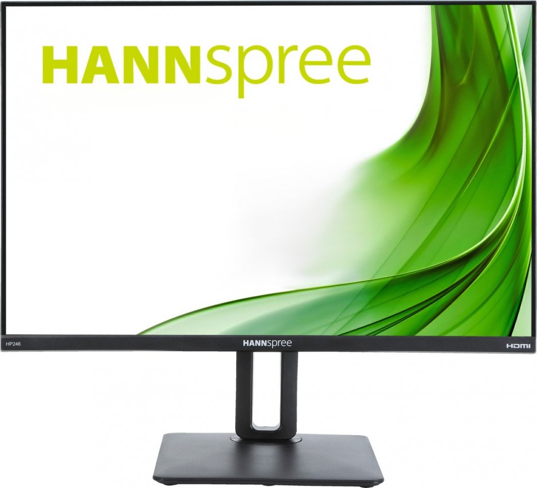 Hannspree HP 246 PFB. Długość przekątnej ekranu: 61 cm (24"), Rozdzielczość: 1920 x 1200 px, Typ HD: WUXGA, Technologia wyświetlacza: LED, Czas odpowiedzi (typowy): 5 ms, Natywne proporcje obrazu: 16:10, Kąt widzenia (poziomy): 178°, Kąt widzenia (pionowy): 178°. Wbudowane głośniki. Standard VESA, Opcja regulacji wysokości. Kolor produktu: Czarny
