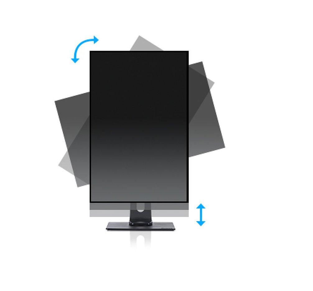 Stopka z regulacją wysokości umożliwia dostosowanie położenia ekranu do własnych preferencji. Rotacja ekranu umożliwia zmianę pozycji ekranu z poziomej (pejzaż) do pionowej (portret). To funkcja szczególnie przydatna w pracy z długimi arkuszami lub tekstem.