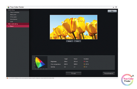 "True Color Finder to ekskluzywne oprogramowanie LG służące do autokalibracji monitorów. Dzięki True Color Finder możesz w łatwy sposób, precyzyjne zestroić kolory.