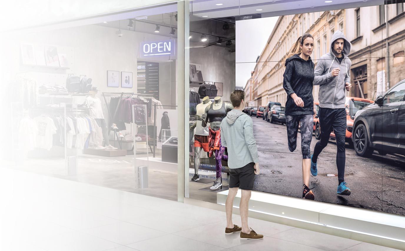 Ultracienka ramka pozwala stworzyć fantastyczną ściankę cyfrową efektywnie przekazującą dynamiczną treść i przyciągającą uwagę odbiorcy. Duży ekran skutecznie przyciąga uwagę przechodniów.