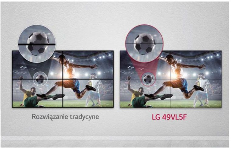 Model 49VL5F zawiera algorytm poprawiania obrazu, który redukuje przerwy między złączonymi ekranami podczas odtwarzania filmów. Obiekty znajdujące się na granicy są dostosowywane tak, aby obraz był jak najbardziej płynny.