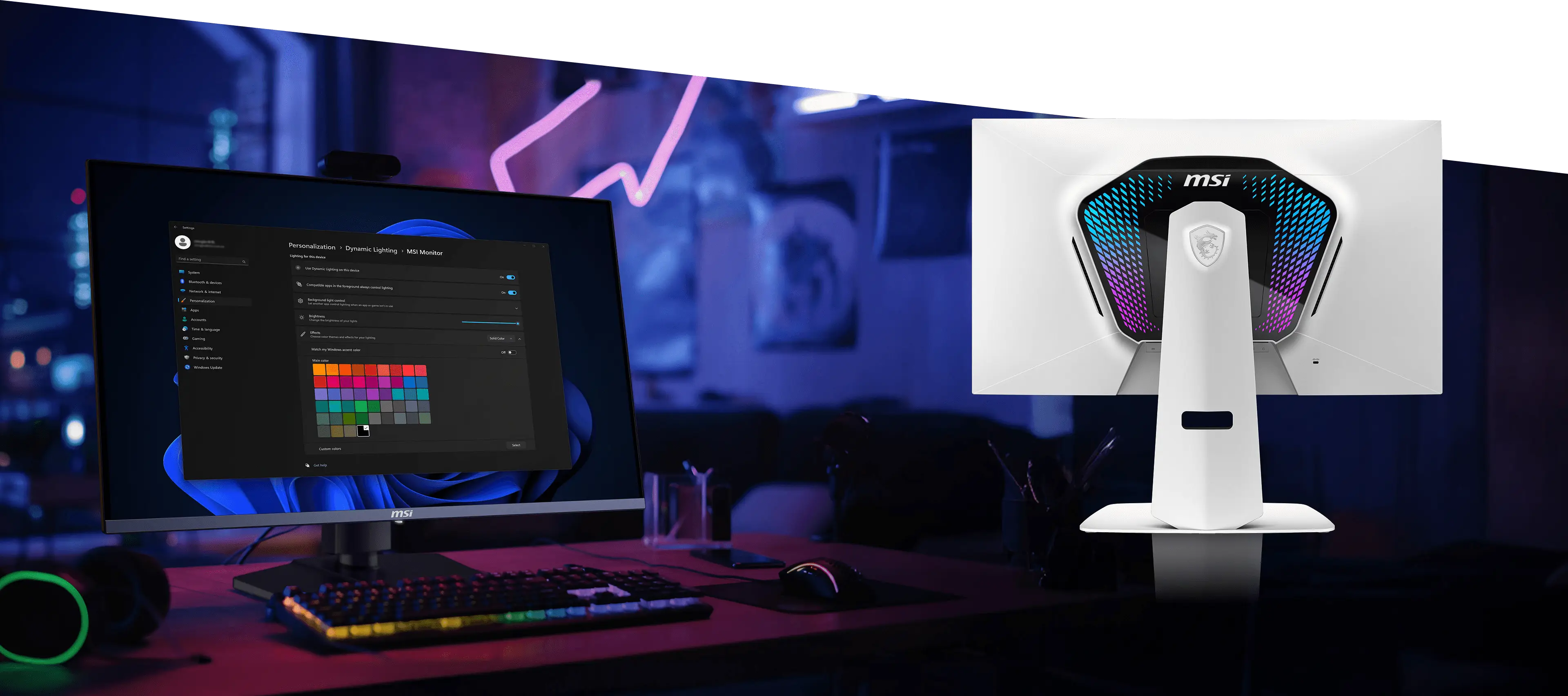 Użytkownicy mogą dostosować jasność i efekty świetlne generowane przez monitor, a następnie synchronizować je z innymi, kompatybilnymi urządzeniami tak, aby uzyskać spójne wrażenia ciesząc się płynną integracją podświetlenia z systemem Windows Dynamic Lighting.