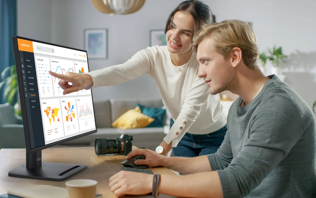 Wąska z czterech stron ramka wokół panelu maksymalizuje przestrzeń na ekranie, minimalizując w ten sposób rozpraszanie uwagi i zwiększając skupienie użytkownika. Monitor ten to idealny sprzęt do pracy lub zabawy, który pozwala na stworzenie idealnie gładkiej, pozbawionej rozpraszających uwagę krawędzi, przestrzeni roboczej złożonej z wielu monitorów.