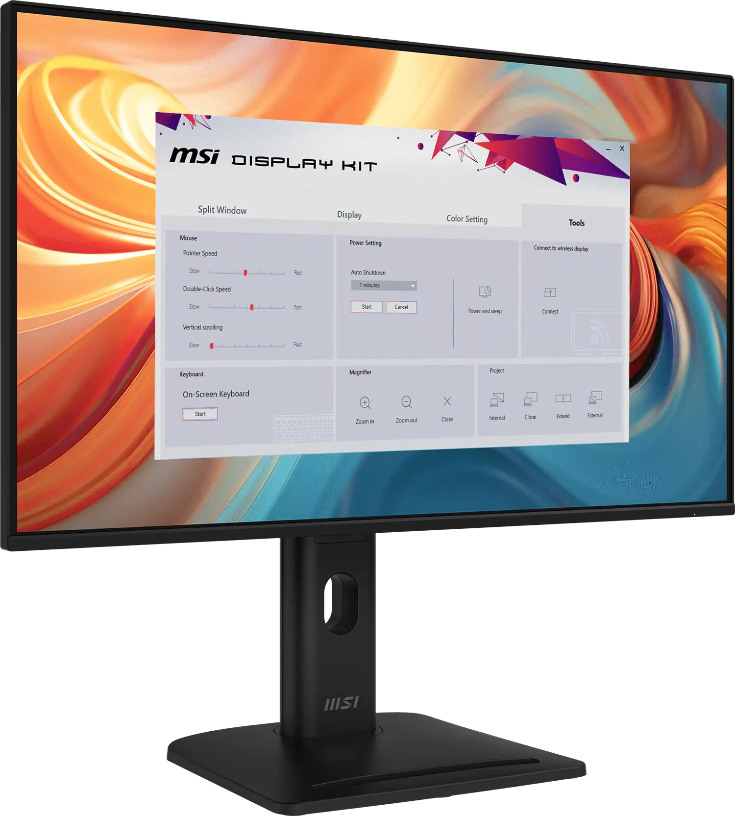 Wyjątkowe oprogramowanie MSI Display Kit oferuje Ci najwygodniejsze narzędzia do zarządzania ustawieniami wyświetlacza. Teraz możesz cieszyć się obrazem, który jest jednocześnie zoptymalizowany pod katem czytania i oglądania obrazów, czy trybem koloru dostrojonym do pracy lub dostosowanym do codziennych zadań.