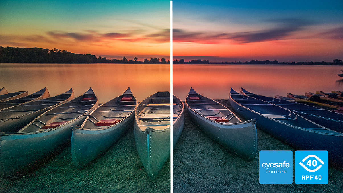 Monitor Philips spełnia wymogi standardu TUV Rheinland Eyesafe®, co zapewnia prawdziwą ochronę przed długim wystawieniem na działanie niebieskiego światła. Zawsze włączony filtr niebieskiego światła nie tylko pomaga zmniejszyć zmęczenie oczu, ale także gwarantuje integralność kolorów.
