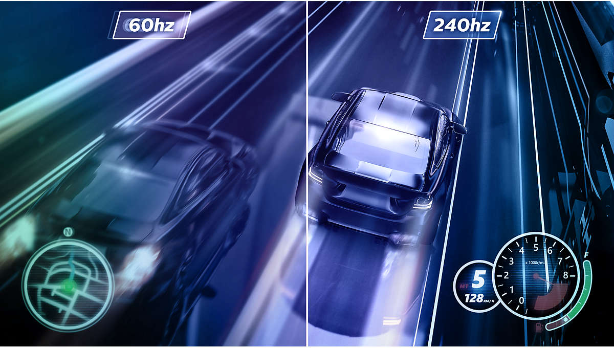 Podczas grania w najbardziej wciągające gry akcji niezwykle wysoka częstotliwość odświeżania 240 Hz zapewnia niesamowicie płynne, pozbawione opóźnień wrażenia. Ten monitor Philips odświeża obraz nawet 240 razy na sekundę, czyli znacznie częściej niż standardowe monitory. Częstotliwość odświeżania 240 Hz zapewnia doskonałą płynność ruchu i wyrazistość obrazu, co jest szczególnie ważne w przypadku dynamicznych gier, takich jak gry FPS i gry wyścigowe. Dzięki monitorowi Philips o częstotliwości odświeżania 240 Hz sceny akcji w grach są pozbawione migotania i zjawiska powidoku. Ten monitor umożliwia głębsze zanurzenie się w świecie gry i bardzo realistyczną rozgrywkę.