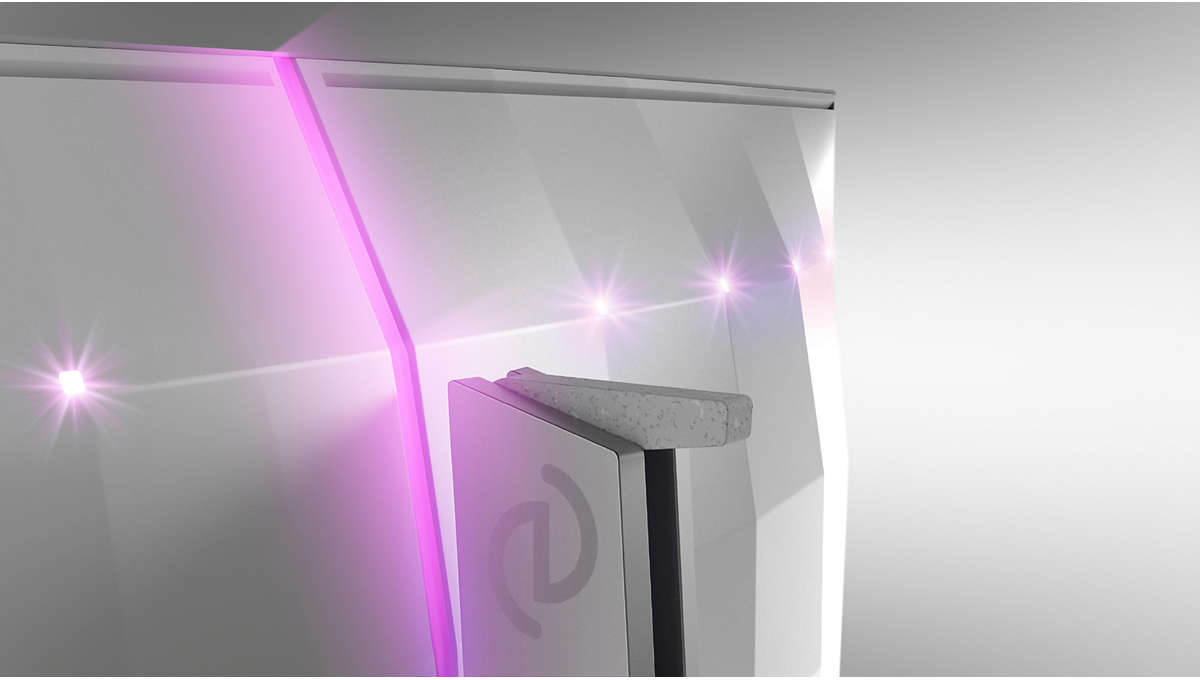 Nasz procesor ze sztuczną inteligencją analizuje przychodzącą zawartość obrazu i stale dostosowuje kolor i jasność emitowanego światła, aby dopasować je do obrazu. Funkcja ta nadaje nowy wymiar wrażeniom podczas oglądania. Innowacyjny Ambiglow wykorzystuje możliwości sztucznej inteligencji, tworząc w ten sposób prawdziwie wciągające i konfigurowalne wrażenia. Od wypełnienia pokoju gier kolorem do poczucia, że jesteś częścią gry, Ambiglow z ulepszoną sztuczną inteligencją został stworzony, aby uczynić twoje wrażenia z gry najlepszymi, jakie kiedykolwiek były, łącząc inteligencję, kolor i światło.