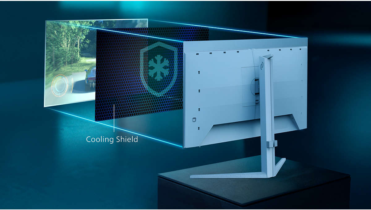 Wypalenie to poważny problem dla użytkowników ekranów QD-OLED. Aby wydłużyć żywotność wyświetlacza, monitor ten ma wbudowaną osłonę z grafenu, która utrzymuje jego niską temperaturę. Grafen równomiernie rozprasza ciepło generowane przez niebieskie światło emitowane przez ekran i chłodzi skuteczniej niż grafit. Dla graczy oznacza to, że mogą grać przy preferowanym poziomie jasności, zmniejszając ryzyko wypalenia ekranu i mogą dłużej cieszyć się idealną jakością obrazu.
