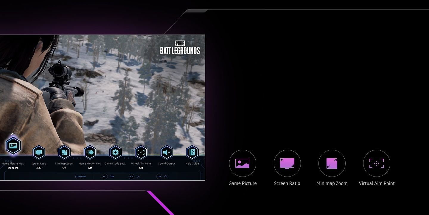 Sprawdzanie ustawień gry i kontrolowanie ich w mgnieniu oka. Można teraz łatwo sprawdzać status najważniejszych ustawień, takich jak FPS i HDR. Można zmienić proporcje ekranu, powiększyć minimapę i wybrać tryb obrazu bez opuszczania ekranu gry.