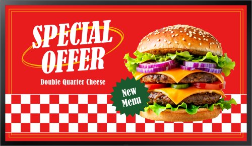 Rozdzielczość Full HD 1920 x 1080 px gwarantuje, że wszystkie wyświetlane treści są ostre i szczegółowe. Niezależnie od tego, czy prezentujesz reklamy, informacje czy multimedia, obraz zawsze będzie wyglądał profesjonalnie i atrakcyjnie.