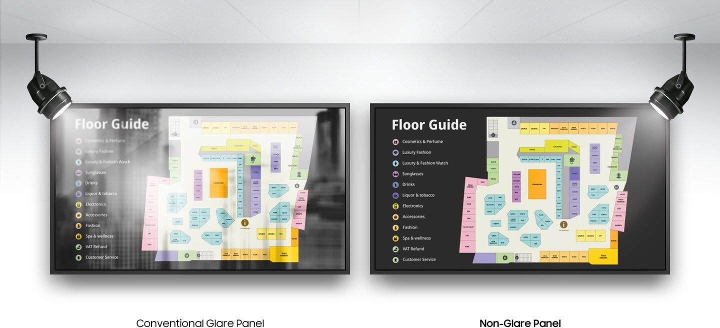 Wszystkie wyświetlacze z serii QHB są wyposażone w niezawodne antyrefleksyjne matryce (non-glare), które zapewniają lepszą widoczność pod każdym kątem i o każdej porze dnia. Technologia antyrefleksyjna gwarantuje skuteczny przekaz istotnych treści w miejscach o krytycznym znaczeniu, takich jak lotniska i dworce kolejowe.