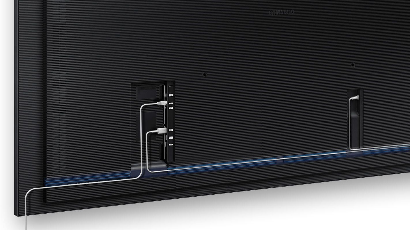 Wąskie ramki i symetryczna budowa urządzenia zapewniają bezproblemowe wkomponowanie się w każde otoczenie, prostą instalację i uruchomienie. By zapewnić maksymalną oszczędność miejsca, wszystkie złącza są skierowane na zewnątrz, dzięki czemu ekran można zawiesić blisko każdej ściany.