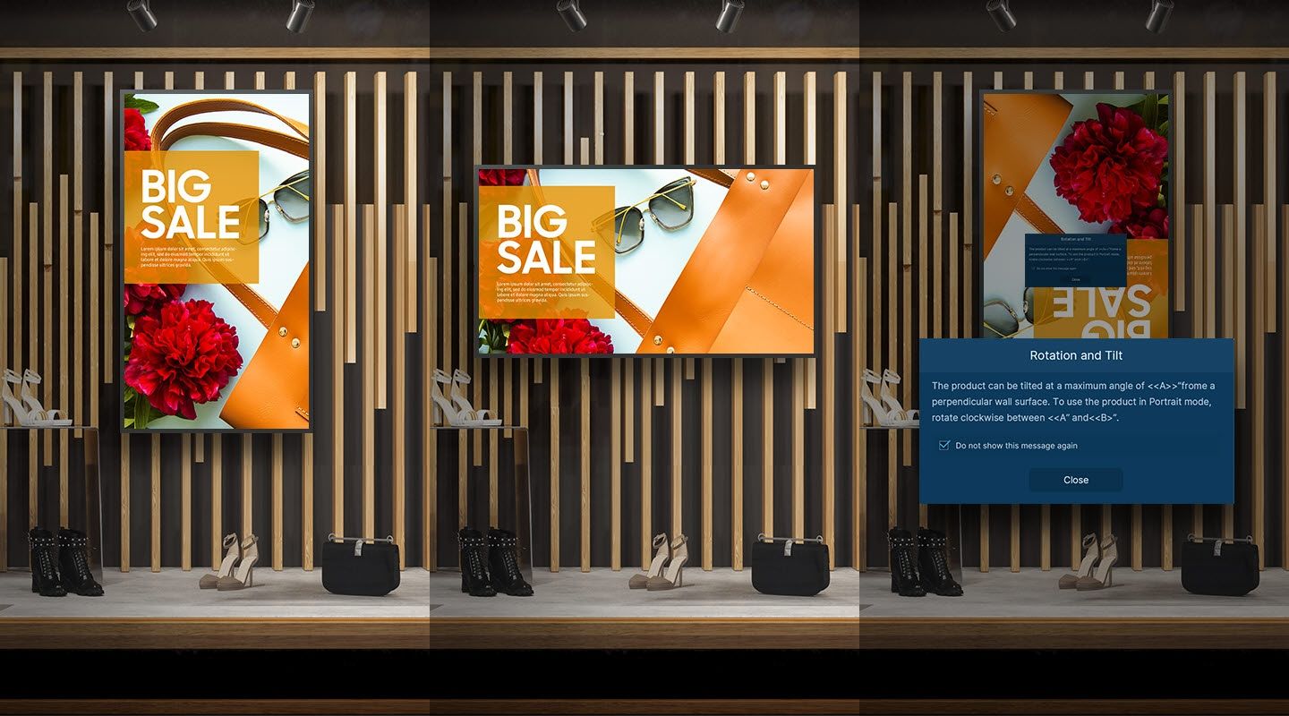 Treść powinna być przejrzysta i stabilna. Funkcja Auto Level automatycznie dostosowuje zawartość, gdy ekran jest obracany z pionowej na poziomą, zwiększając wszechstronność w praktycznie każdej przestrzeni. Dodatkowo automatycznie rozpoznaje nieprawidłowe kierunki obrotu, utrzymując zawartość w prawidłowej orientacji.