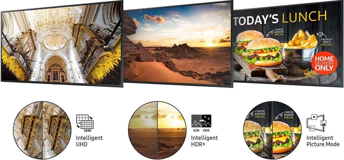 Wyświetlacze serii QMN wykorzystują technologię Intelligent Picture Quality firmy Samsung, aby podnieść poziom dostarczania treści w dowolnych ustawieniach. Ta wyrafinowana prezentacja przekształca zawartość z dowolnego źródła na jakość na poziomie UHD i optymalizuje tekst i obraz na ekranie dzięki wyraźnym krawędziom i drobnym szczegółom.