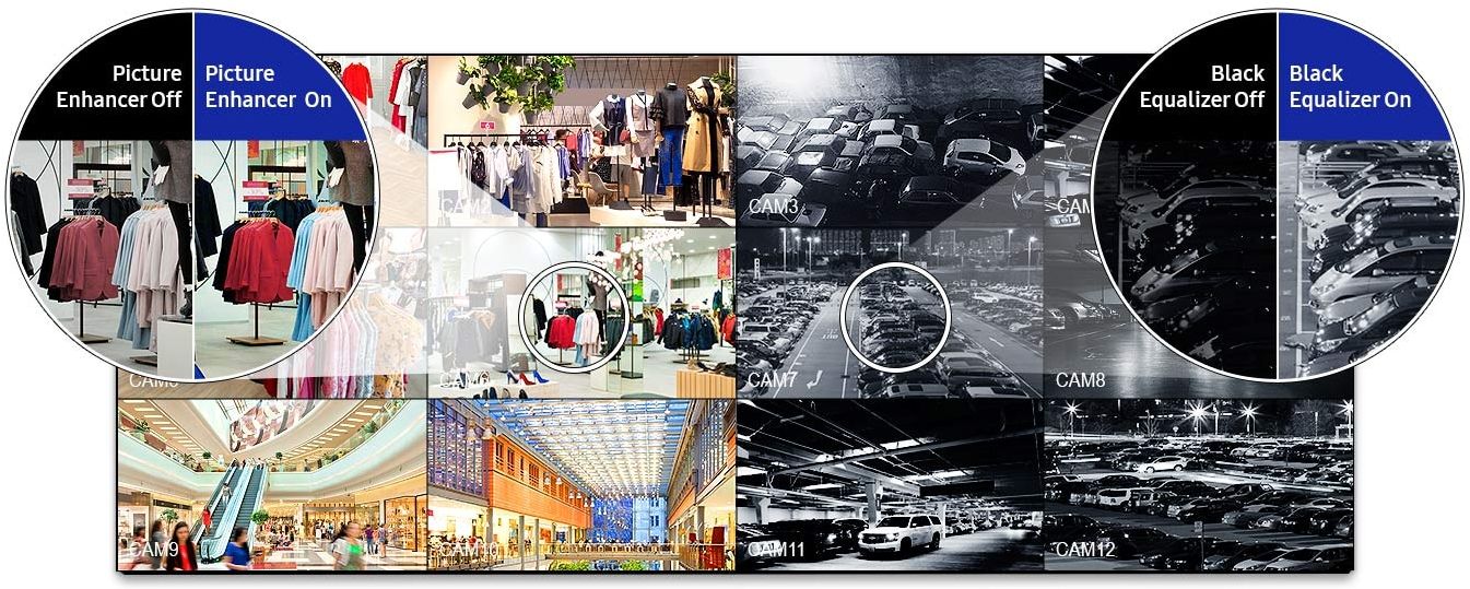 Potężna technologia udoskonalania obrazu firmy Samsung sprawia, że wszelkie treści prezentowane są w sposób ostry i wyrazisty. Tryb Picture Enhancer poprawia nasycenie kolorów i kontrast, dostosowując krzywą gamma. A tryb Black Equalizer rozjaśnia ciemne obrazy, zwiększając widoczność detali.