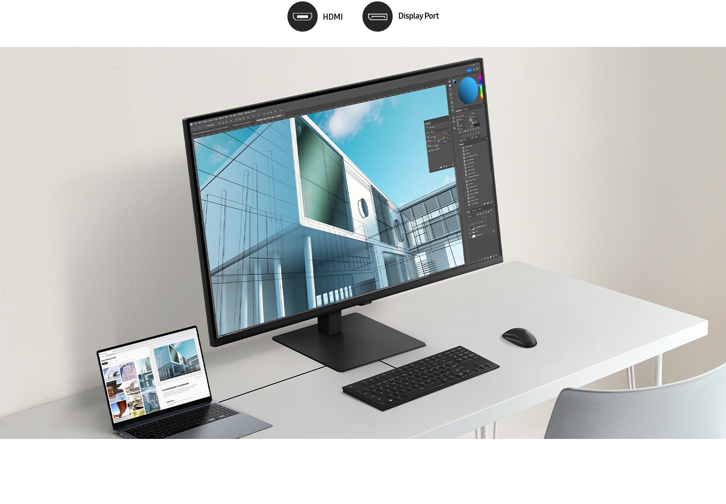 Dzięki portom HDMI i DisplayPort podłączanie urządzeń peryferyjnych staje się proste i wygodne. Intuicyjny interfejs upraszcza konfigurację i poprawia produktywność, umożliwiając płynniejszą pracę.