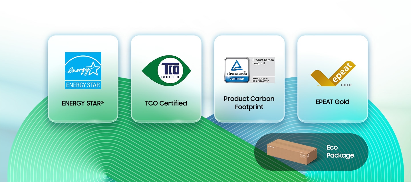 Monitor Samsung ViewFinity posiada certyfikaty TCO, ENERGY STAR i EPEAT Gold oraz certyfikat śladu węglowego TÜV. Zawiera ponad 50% plastiku z recyklingu. Do jego produkcji nie używa się chemicznych powłok, co ułatwia recykling. Co więcej, opakowanie klejone jest zamiast zszywane – nie ma potrzeby usuwania zszywek podczas utylizacji.