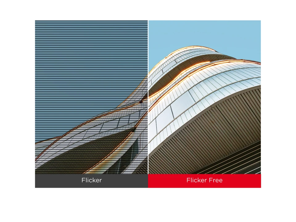 Zredukuj zmęczenie wzroku i zachowaj świeżość spojrzenia dzięki technologii ViewSonic Eye ProTech. Funkcja Flicker-Free eliminuje migotanie ekranu, natomiast Blue Light Filter minimalizuje szkodliwe światło niebieskie podczas długich sesji przed monitorem, zapewniając komfortowe warunki pracy i rozrywki.